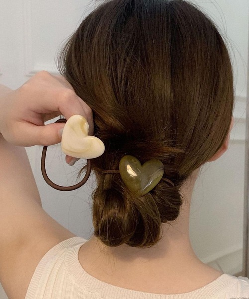 マーブル模様のハートがおしゃれなヘアゴム。