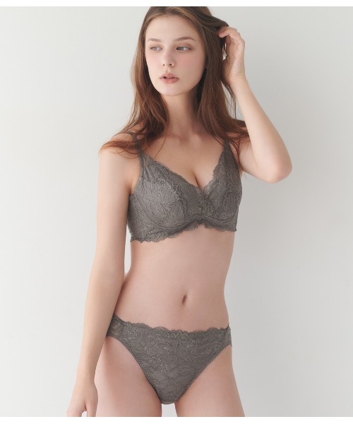 ・バックはなめらかなストレッチ生地で、脚ぐりをストレッチレースに切り替え。ゴム不使用で軽いフィット感
