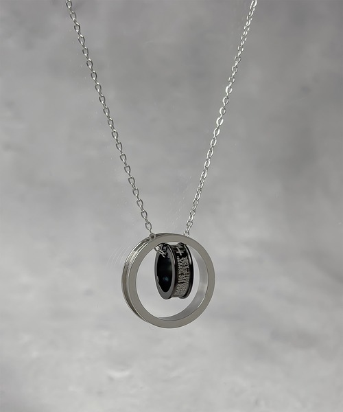シルバー×ブラックのコントラストが美しいダブルリングネックレス。