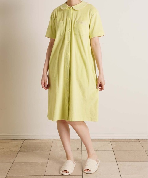 半袖ワンピースタイプのナイトウェアは小さな丸襟が大人の可愛らしさを演出。