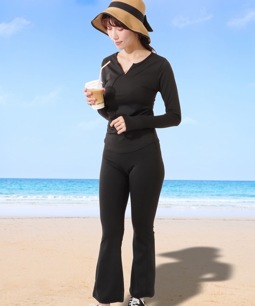 単色×無地のシンプルなデザインがうれしいラッシュガード。