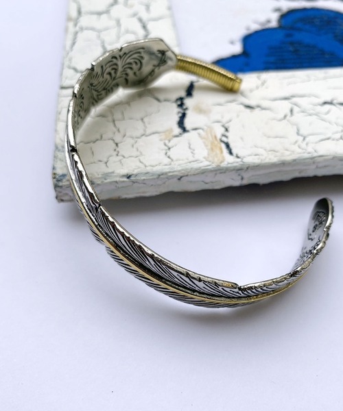 【 ユニセックス 】 ネイティブ調 フェザー シルバー バングル