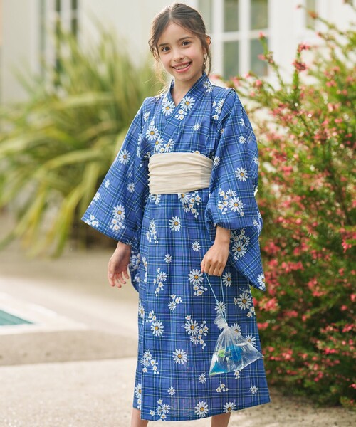 チェック柄の上にまるでマーガレットの刺繍を施したようなデザイナーこだわりのオリジナルプリントをあしらった浴衣です。