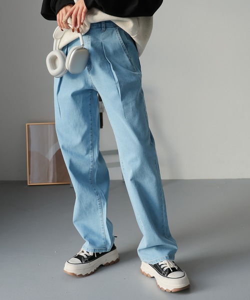 《タックデザインがポイントのデニムパンツ》