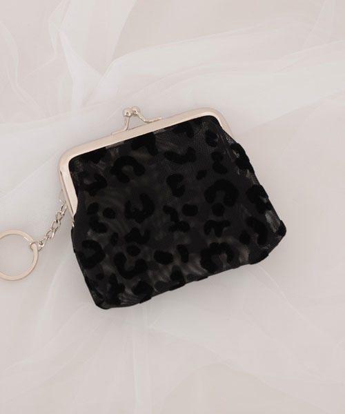 ハート・レオパード柄が可愛いメッシュ素材のチェーンリング付き、がま口ポーチ