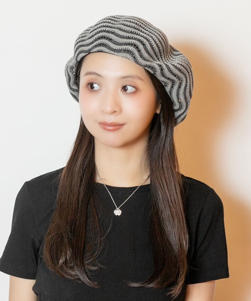 ボーダー柄のベレー。