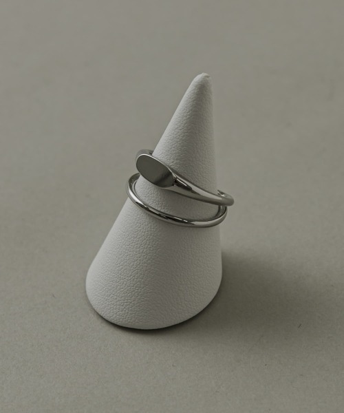 シンプルなメタルラインのリングとトップをフラットにした独特なディテールのリングを重ね付けしているようなルックスのダブルラインリング。