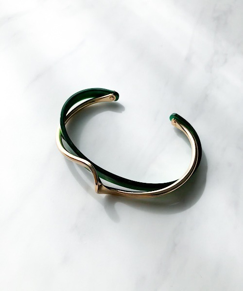 艶やかなメタル素材が躍動感のあるフォルムを描くデザインバングル。