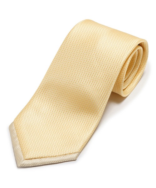 ベーシックで合わせやすいソリッド柄に剣先切替デザイン を加えた、さりげないおしゃれ感がポイントのネクタイ。