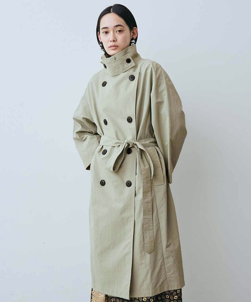 トレンチ風の衿もとは、立てても着られるチンストラップ付き。