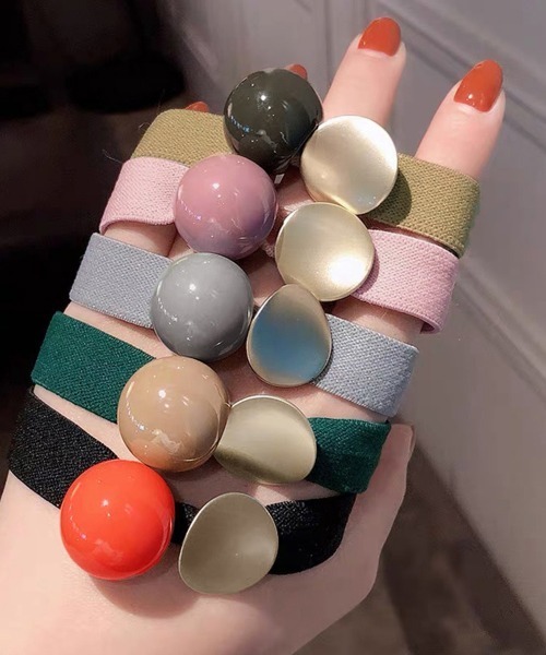 カラーボール メタルプレート 平ゴムセット 髪飾り カジュアル まとめ髪 カラーゴム結ぶ 髪留めヘアポニー ブレスレット
