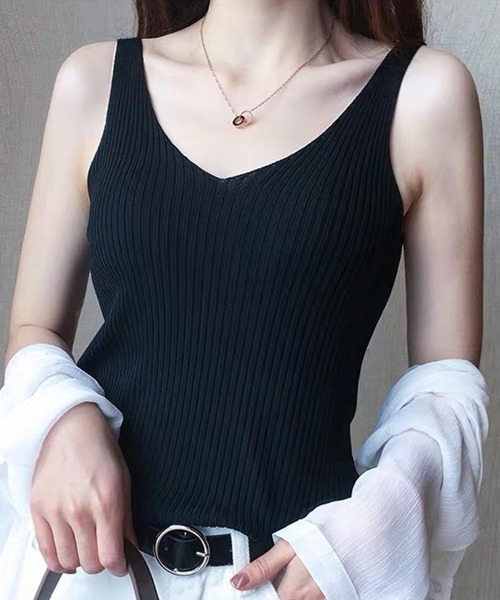タンクトップ Vネック サマーニット ノースリーブ ニットキャミソール レディース シンプル インナー