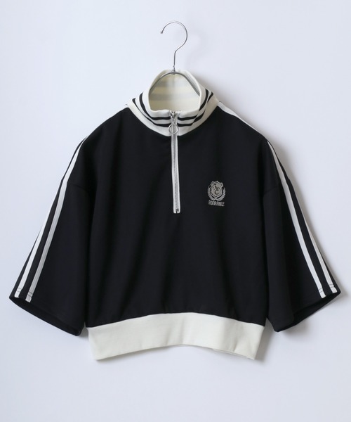 商品名:襟リブライン ハーフジップジャージ プルオーバートップス レディース/サイドライントラックジャケット