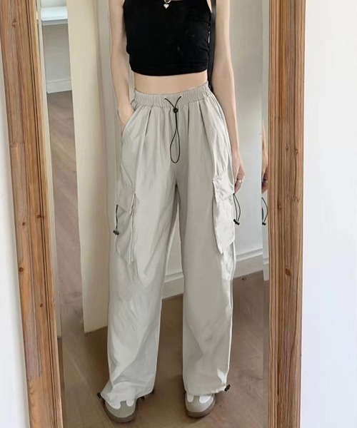 ミリタリーパンツ 薄手パラシュートパンツ 春夏スポーツパンツ ダンス衣装 韓国風 ウエストゴム ストリート ワイドパンツ