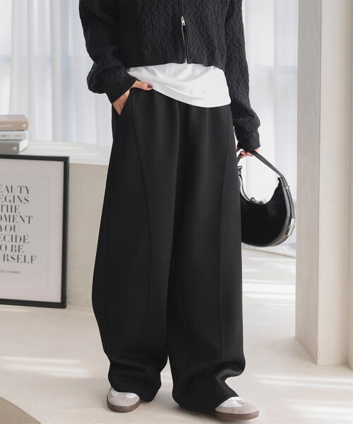 ストレートワイドなシルエットがトレンド感のあるセンターシームスウェットパンツ。