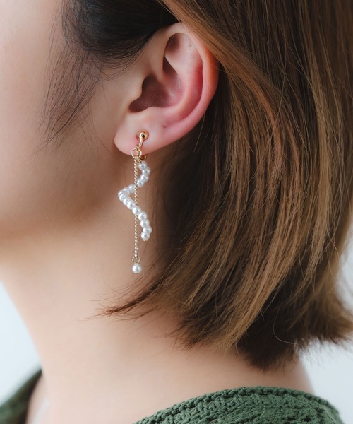 キーワード:イヤリング レディース ドロップ ネジバネ パール ドライブ フェス ライブ 夏 大人カジュアル 定番