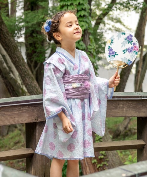 フラワー柄にチュールのポンポンがキュートなアクセント。一味違う浴衣スタイルを楽しめます。