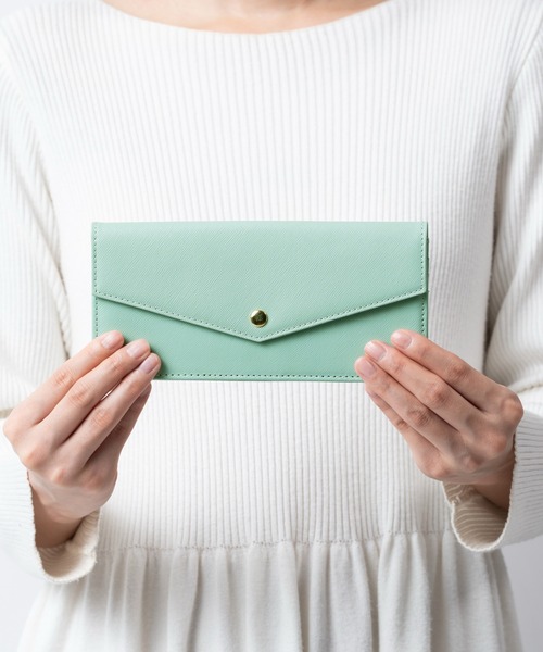 高級サフィアーノレザーの大人可愛い薄型かぶせ蓋付き長財布