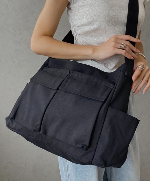 ポケット多数!収納力抜群キャンバスショルダーバッグ
