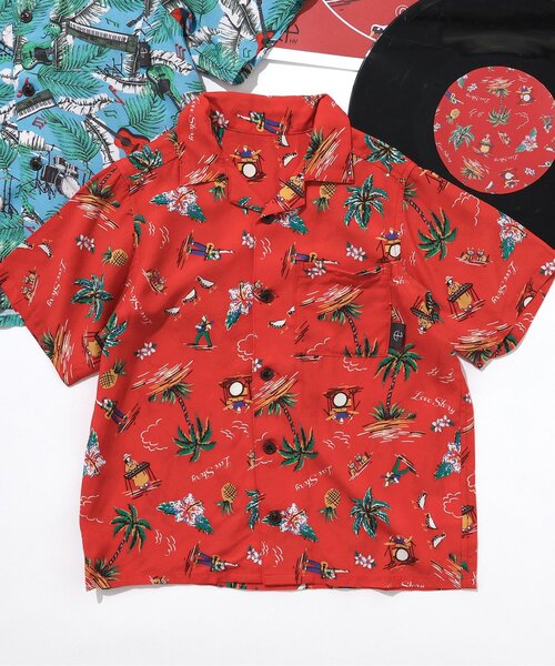 総柄シャツはレッドとターコイズブルーの2色展開◎