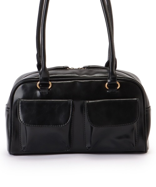 立体ポケットがアクセントになった、ボストンバッグ。