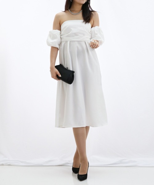 商品名:パフスリーブオフショルエレガントワンピース/パーティードレス