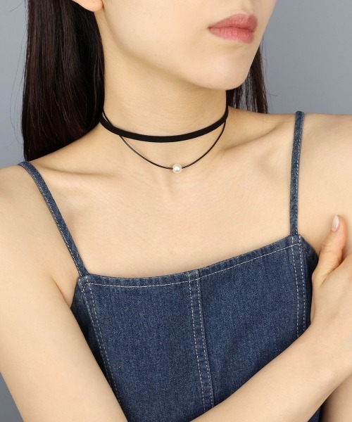 2連デザインが特徴的なベロア素材のチョーカーネックレス。