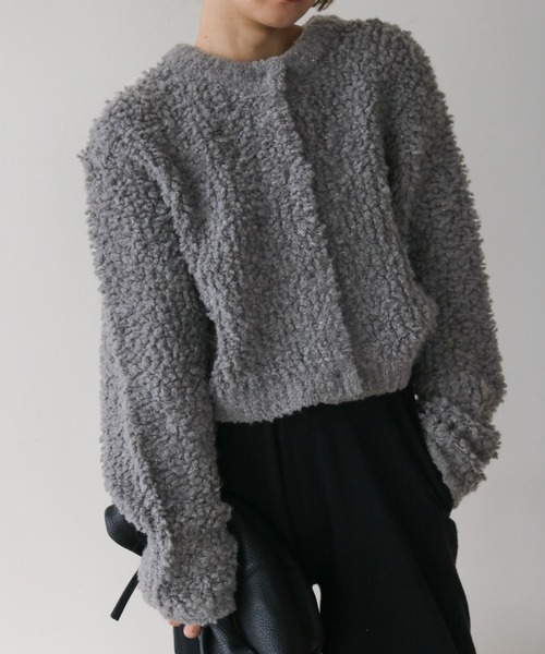 クルーネッククロップドガーディガンドロップショルダーウール混