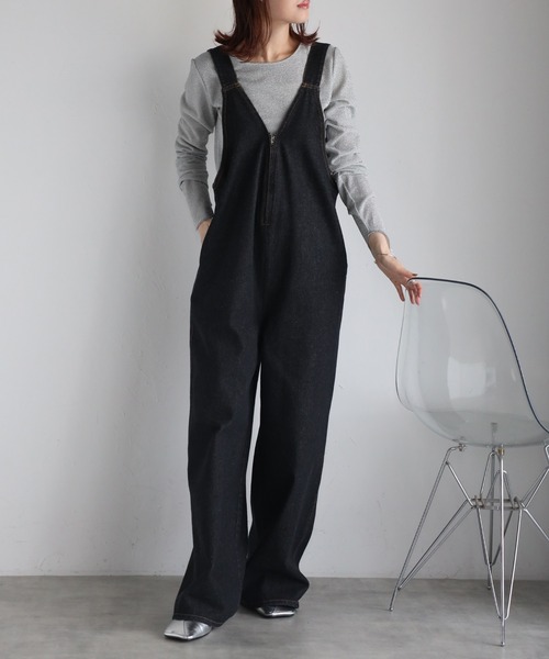 \\デニムフロントジップ サロペット//