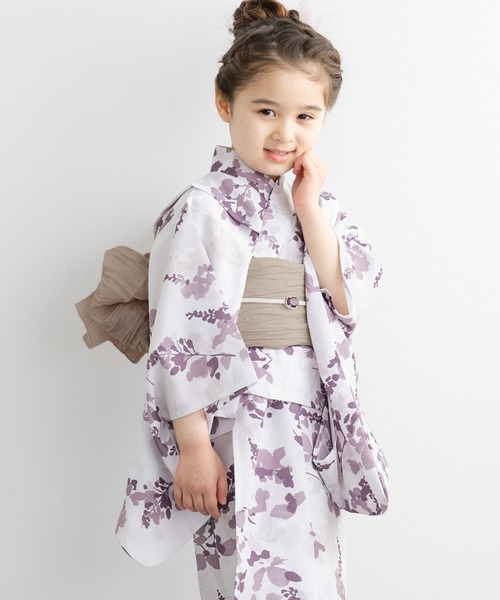 浴衣 floroキッズ浴衣2点セット (浴衣+帯) 子ども 110/120/130cm キッズ 子供 女の子