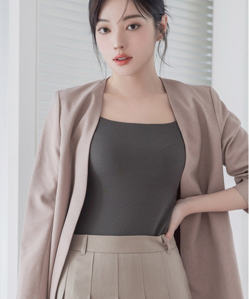 リブ素材で1枚で見せて着用できるので、コーディネートの幅が広がります。