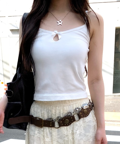 着回し力抜群!リボン付きベーシッククロップドキャミソール