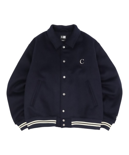 スタイル:Melton Varsity中綿入りのメルトンヴァーシティージャケット。フロント開きはスナップボタン。衿・裾・袖口はリブ仕様。