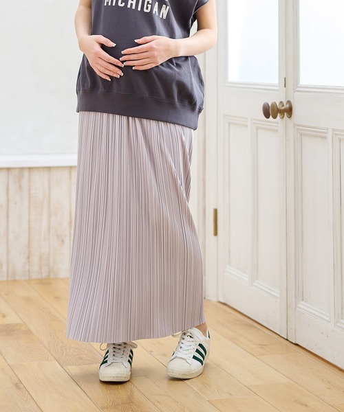 柔らかなアコーディオンプリーツ生地を用いたロングスカートです。