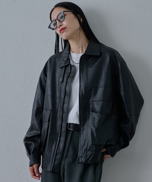 着用サイズL/176cm/男性スタンドにもなる2way仕様で今年のアウターはレザージャケットが大活躍の予感。
