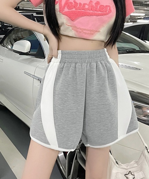 レディース カジュアル ショートワイドパンツ ウエストゴム ゆったり スポーツショーパン バイカラーヨガパンツ 部屋着夏
