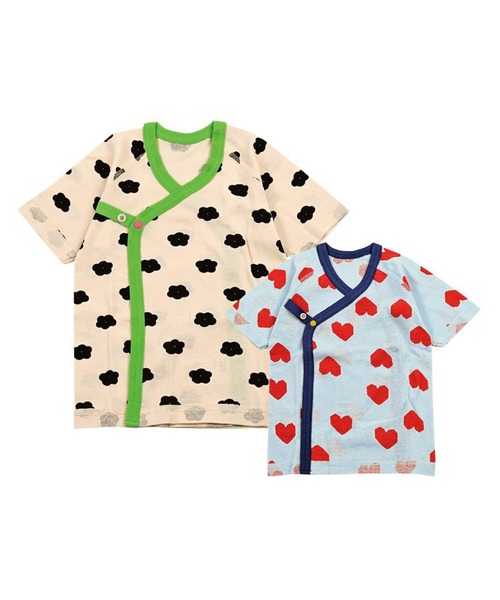 マーキーズオリジナルイラストが可愛い短肌着♪胸元には、動いても着崩れないようにスナップボタン付き。