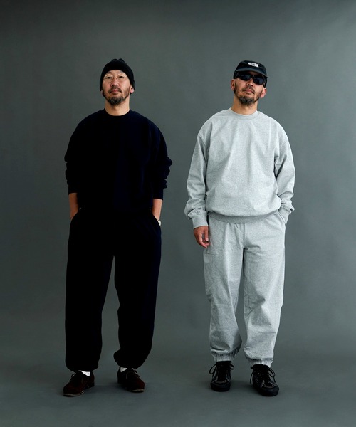 スウェットでは実現出来ない天竺ならではの伸縮性と速乾性が特徴で、ホーム/ワンマイウェアとして活躍します。スウェットでは実現できない伸縮性/速乾性の特徴を残しつつ、生地を厚手の天竺生地に編みたてております。