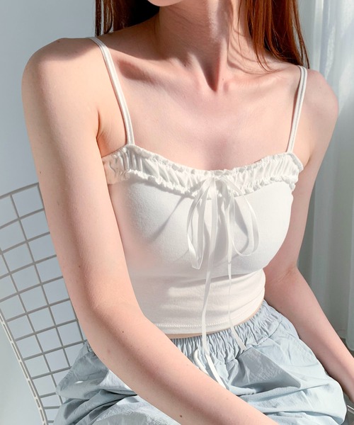華奢な肩紐とフリル×リボンがキュートなキャミソール。