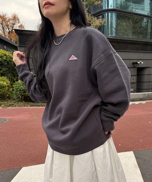 ・胸元の赤いロゴワッペンがアクセントになったビッグスウェット。