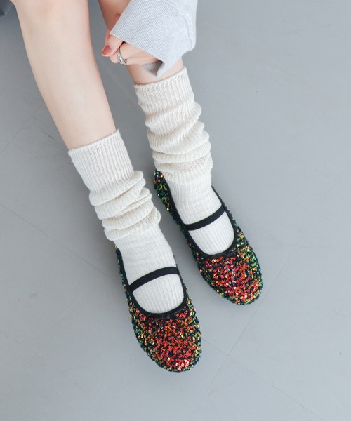【EVOL 2024AW collection】マルチはWEB限定カラー!履きやすさにこだわったラウンドバレエ。程よく丸みがありつつ、幅広いコーディネートに合わせやすいようにお作りいたしました。材料にはスパンコールを使用。