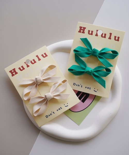 【 Bambin / ボンバン 】 カラー リボン ヘアクリップ 《 2個セット 》