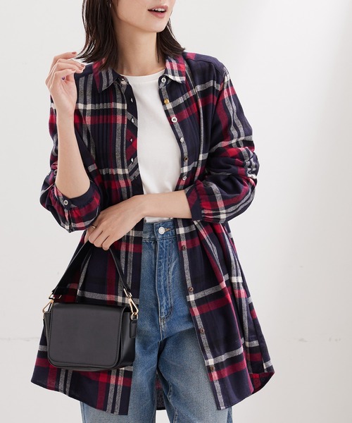 秋めくチェック柄を楽しむ愛らしい大人シャツ