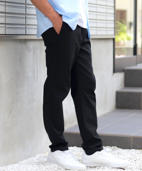 スーパーストレッチ素材でノンストレスな穿きごこちながら、美しいシルエットをキープしてくれるストレッチパンツ。イージーウエスト仕様なので、気負いなく取り入れられます。シワになりにくい素材でお手入れしやすくUVカット機能付きで機能面でも優秀なイージーパンツです。