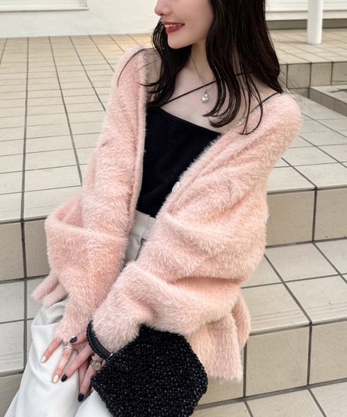 一枚で華やかな印象を与えてくれるシャギーニットカーディガンです。