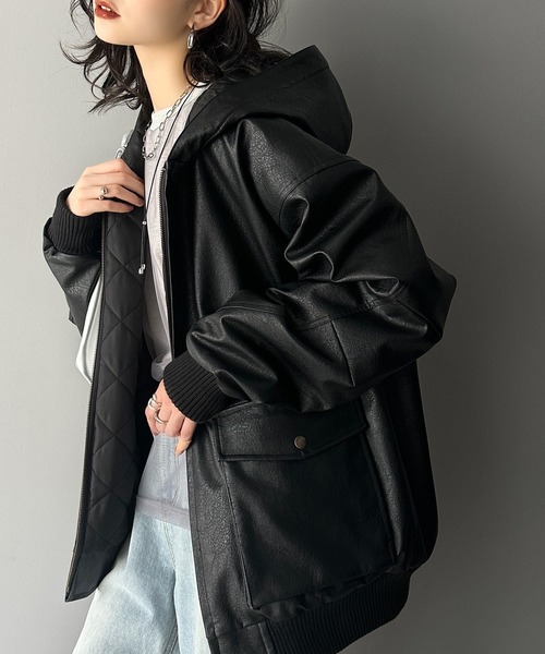 《レディースもメンズも着れちゃう”フェイクレザーフーディ―ブルゾン”。》