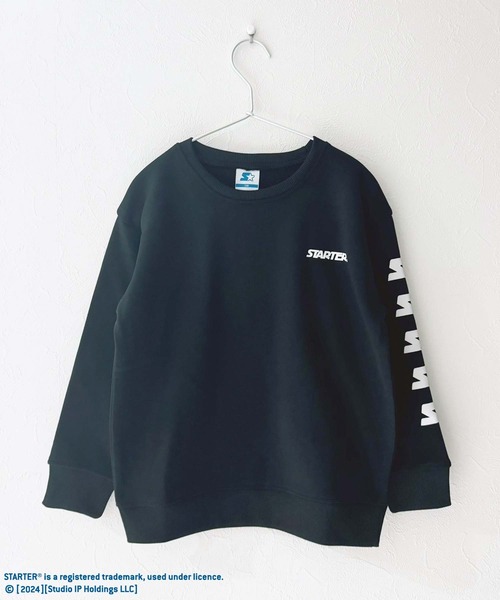 袖プリントがポイントの『STARTER オーバーサイズ 裏起毛 袖プリント トレーナー』