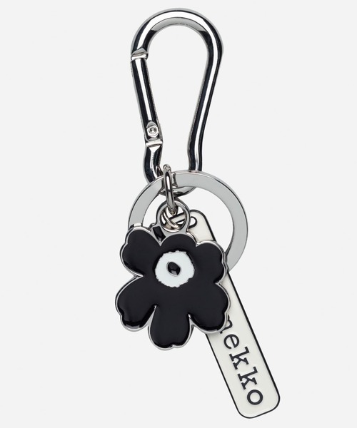 鍵類をまとめて持ち運べるキーチェーン。Unikkoの花モチーフは、メタリックカラーをベースに引き締まったブラック×ホワイトの配色で仕上げ、スタイリッシュな印象におつくりしました。バッグのハンドルやベルトループなど、好みの場所にセットできるカラビナフックを採用し、使い勝手にもこだわっています。