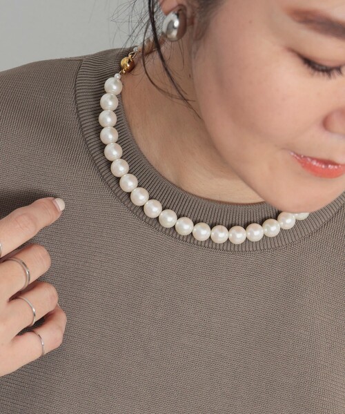 温もりのあるホワイトの樹脂パールがシンプルながらも洗練された印象をもたらすデザインネックレス。形状記憶型のワイヤーを使用していることで形が崩れにくく、いつでも美しいフォルムを演出してくれます。