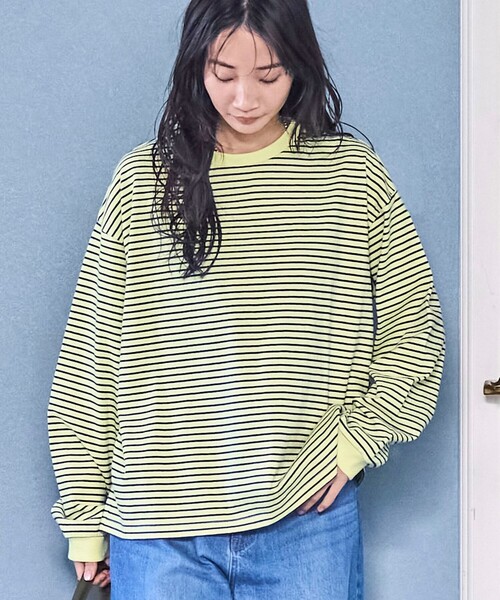 ニットとの重ね着やアウターのインにもちらっとみえる細ボーダーがポイントになりおすすめです。
